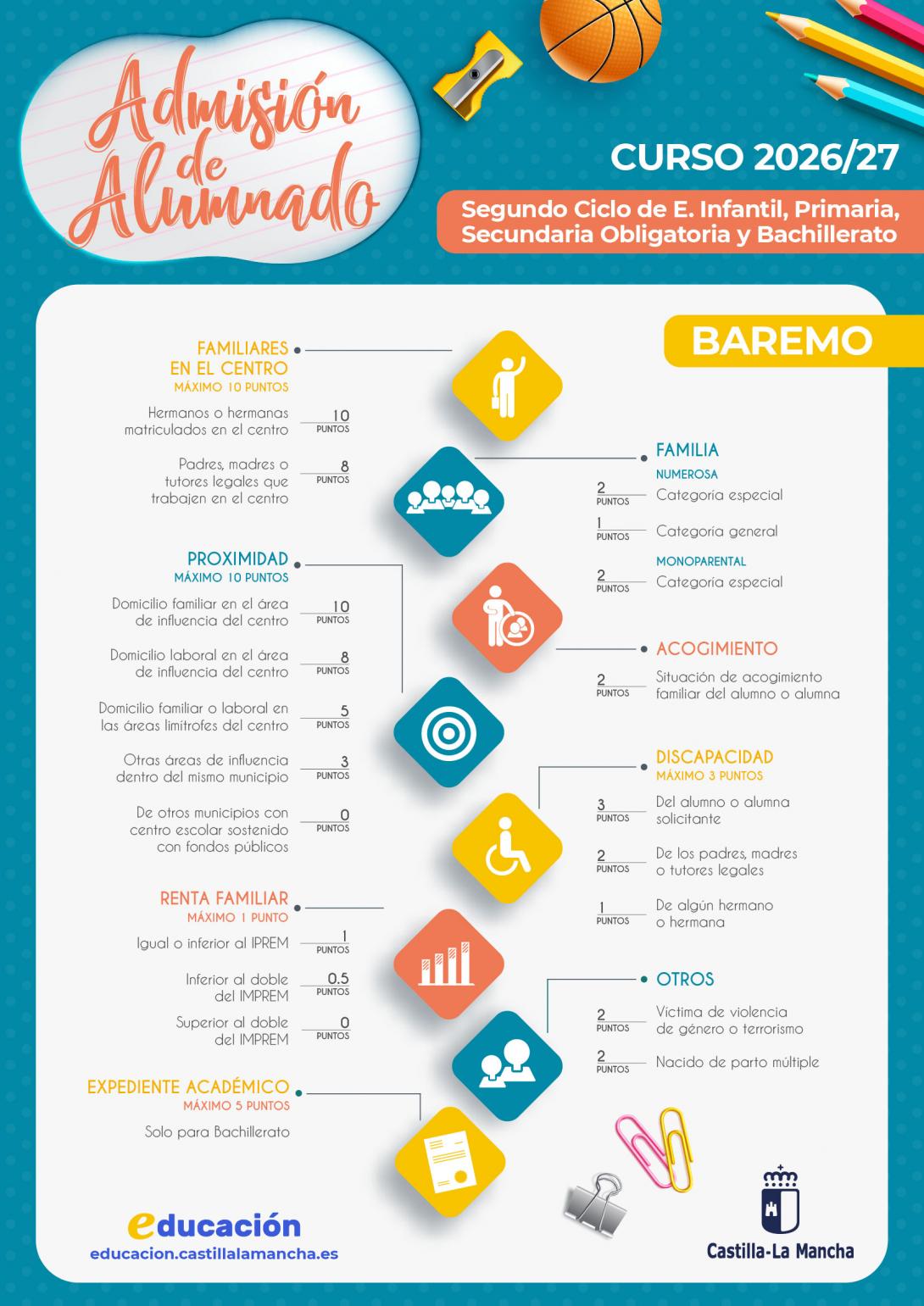 Resolución de 06/02/2026, de convocatoria de admisión de alumnado, curso 2026-2027