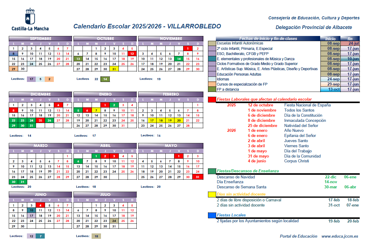 Pulsa aquí para abrir el CALENDARIO ESCOLAR 2025-2026 - VILLARROBLEDO